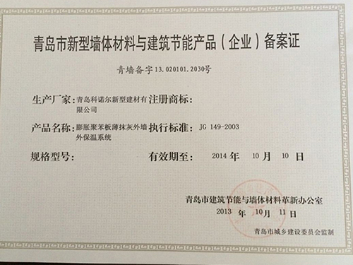 青島科諾爾新型建材有限公司主要產品:擠塑板( 阻燃B1級.B2級),泡沫板( 阻燃B1級.B2級)及各種造型,聚合物砂漿系列(粘結砂漿.罩面砂漿.膠粉.瓷磚粘接劑.填縫劑.界面劑),各種新型建材、保溫材料等等,公司產品遍銷全國各地,受到廣大用戶的一致好評。